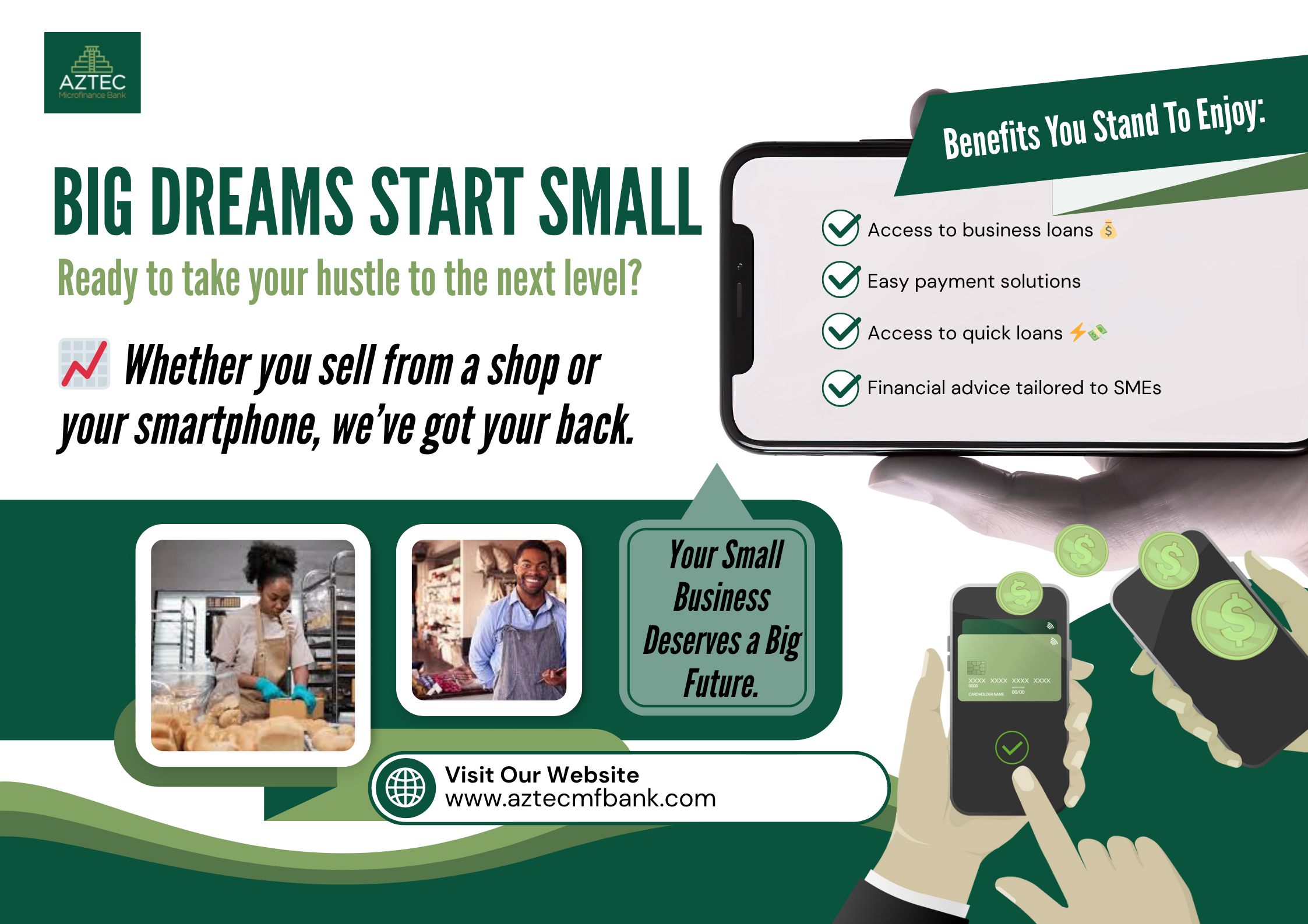 The Aztec SME Account is tailored towards small business owners. Open and operate the Aztec SME Account with no charges and access loans and financial advisory services for business growth. This is a hybrid of the current account and corporate account. It is for individuals, Corporations amongst others who want a convenient account at minimal operational cost.